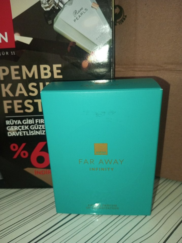 Turkuaz kutuda Far Away Infinity kadın parfümü, özel bir koku deneyimi sunar.