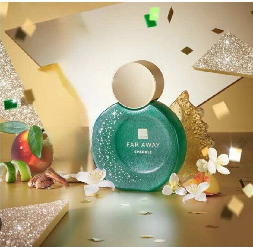 Far Away Sparkle, ışıltılı yeşil şişesi ve zarif çiçek detaylarıyla kadın parfümüdür. Parlak ve ferah bir koku sunar. ✨