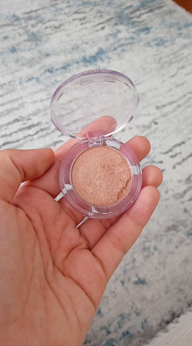 Pastel bej tonlarında, hafif ışıltılı, doğal bitişfar Şeffaf kapaklı kompakt kutuda.