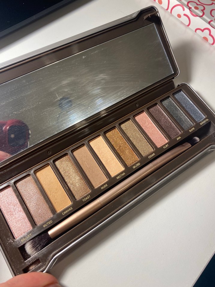 Bej ve koyu tonlarda göz farı paleti, içinde ayna ve çift taraflı fırça bulunur. Çeşitli makyajlar için uygundur.Kapağı ezildi harici sorun yok