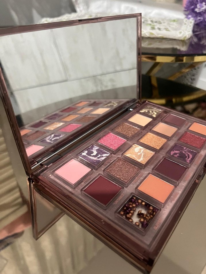 Mat ve ışıltılı bitişlere sahip koyu bej, kahverengi ve bordo tonlarında göz farı paleti. İçinde kullanışlı bir ayna bulunur. 18 li