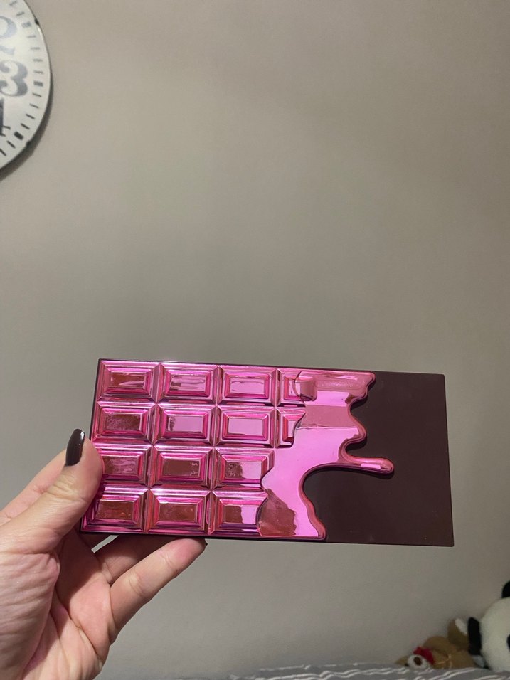 Canlı koyu pembe metalik kaplamaya sahip, eriyen çikolata şeklinde göz farı paleti. Pigmenti çok yüksek ve uzun süre kalıcı