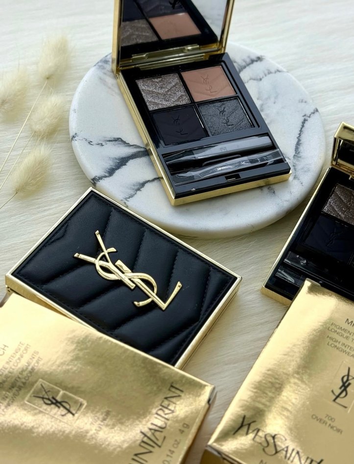 İthal ürüüüün sınırlı sayıda Yves Saint Laurent göz farı paleti, koyu altın tonlarıyla şık siyah ve altın kapaklı kutuda. Aynalı ve çeşitli aplikatörler içerir. ✨ #farpaleti #makyaj