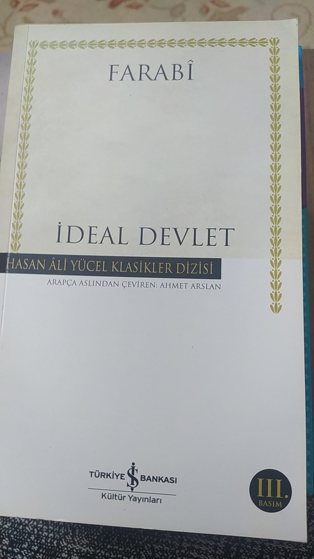 Farabi'nin "İdeal Devlet" adlı eseri, Ahmet Arslan tarafından Arapçadan çevrilmiş klasik bir romandır. Türkiye İş Bankası'nın Hasan Ali Yücel Klasikler dizisindendir.