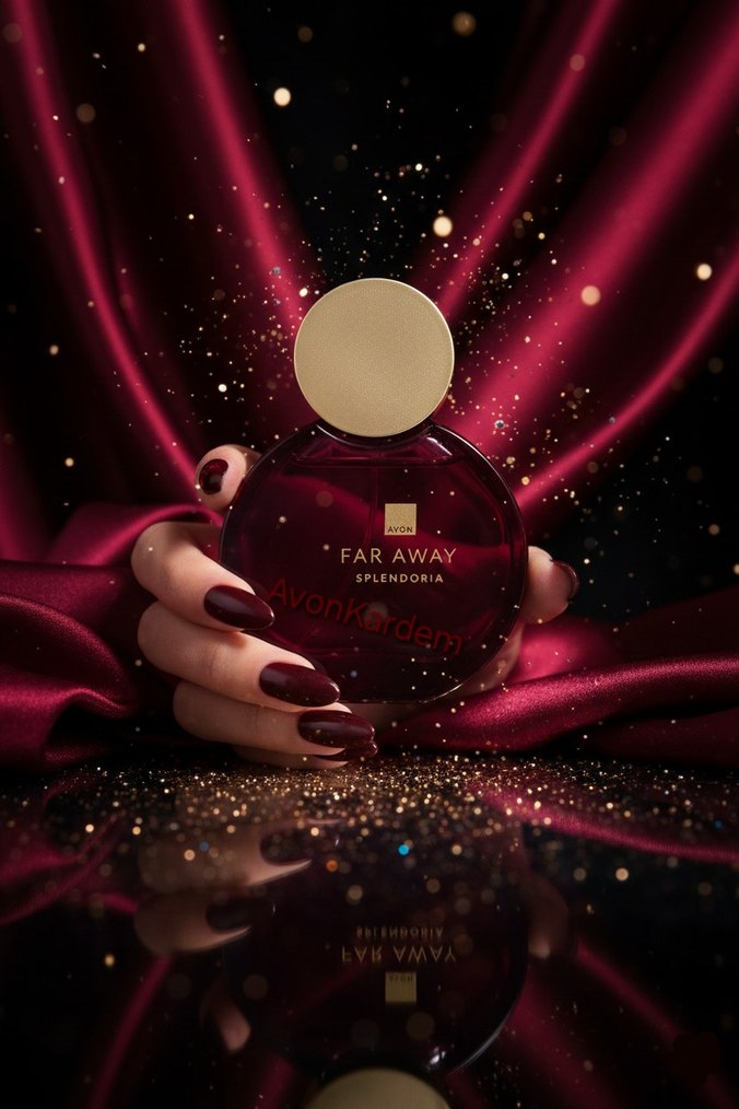 Yuvarlak şişede, altın kapaklı Faraway Splendoria kadın parfümü, zengin ve şık bir koku sunar.
