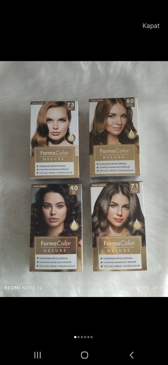 FarmaColor Deluxe saç boyasıları, doğal görünümlü renk ve parlaklık için 4.0, 7.1, 7.3 ve 8.0 tonlarını içerir. Uygulaması kolay formüller saç canlılığını artırır. ♀️
