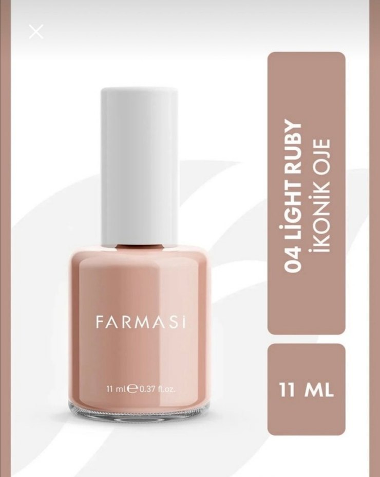 Farmasi 04 Light Ruby bej renk 11 ml oje, tırnaklara pürüzsüz ve açık bej ton sağlar.