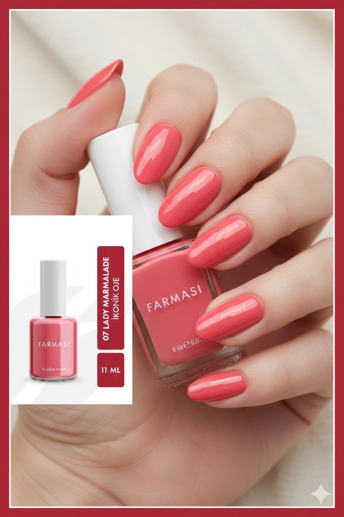 Farmasi açık pembe oje, 11 ml şişede parlak ve pürüzsüz bir görünüm sağlar. Zarif ve hafif bir ton sunar. ikonic Lady marmalade oje