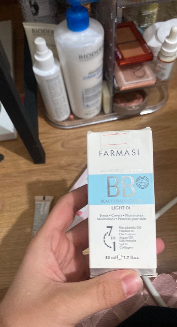 Farmasi Açık Ton BB Krem, cildi nemlendirir, eşitler ve aydınlatır. Macadamia yağı, B3 vitamini, yulaf özü, argan yağı, ipek proteini ve SPF 15 içerir.