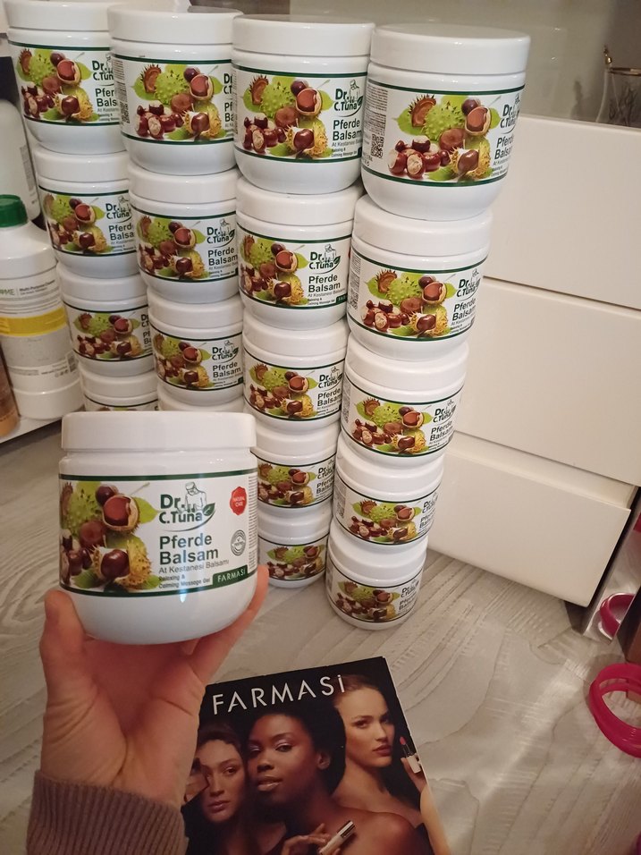 Farmasi Dr. C. Tuna at kestanesi özlü beyaz kavanozda cilt bakım balsamı.