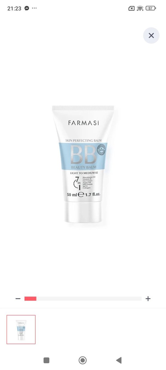 Farmasi BB krem, 50 ml tüpte açık bej tonunda, cildi kusursuzlaştıran ve nemlendiren yağlar içerir.