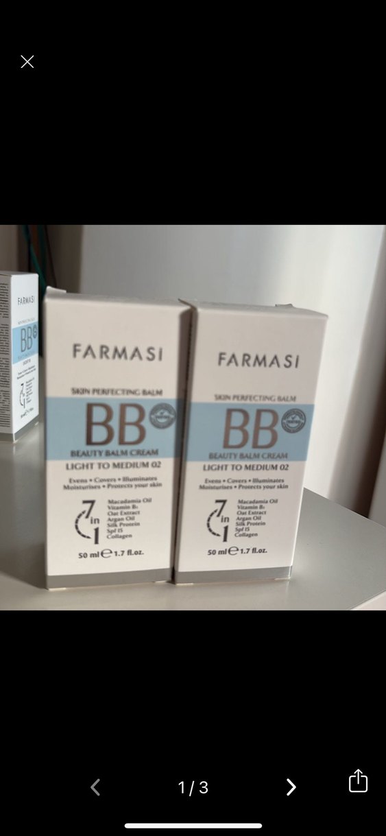 Farmasi BB Krem açık-bej tonunda, 7'si 1 arada faydalar sunar; nemlendirir, cilt tonunu eşitler ve korur. Vitamin ve argan yağı içerir.