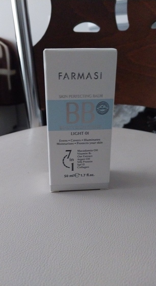Farmasi BB krem açık bej ton, cilt tonunu eşitler, kapatır ve aydınlatır. Macadamia yağı, B5 vitamini ve argan yağı ile nemlendirir, SPF 15 koruma sağlar.