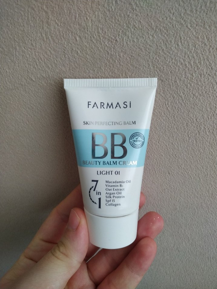kullanılmadı,Farmasi BB Krem açık bej renginde, SPF 15 korumalı, makadamya yağı, B5 vitamini, yulaf özü, argan yağı, ipek proteini ve kolajen içeren cilt kusurlarını dengeleyen krem.