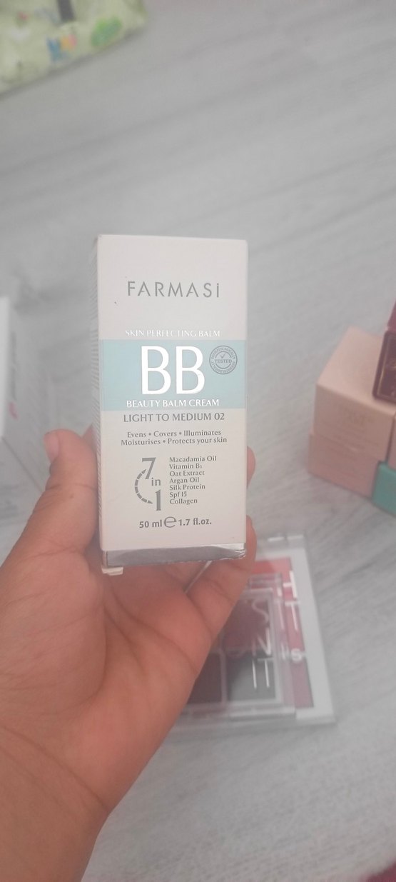 Farmasi BB Krem Açık Ten tonu cilt tonunu eşitler, kapatıcı etkisi sağlar ve nemlendirir. İçeriğinde makadamya yağı, B5 vitamini, yulaf özü, SPF 15 ve kolajen bulunur. 50 ml.