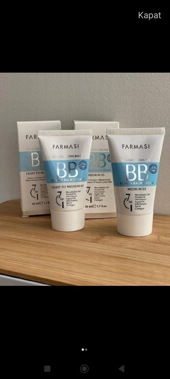 Farmasi BB Krem, nemlendirme, güneş koruması ve cilt kusurlarını kapatma dahil 7 faydayı açık ve orta tonlarda sunar. Bej renk seçenekli. ✨