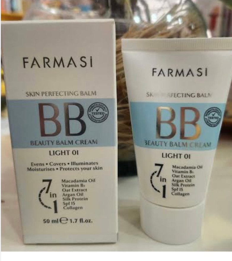 Farmasi BB Krem Light 01 cilt tonunu eşitler, kapatır ve aydınlatır. Macadamia yağı, vitamin B, yulaf özü, argan yağı, ipek proteini, kolajen ve SPF 15 içerir. 50 ml.