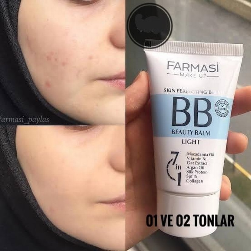 Farmasi BB Krem, açık ten renginde, SPF 15 koruması ve cilt kusurlarını kapatan formüle sahiptir. İçeriğinde makadamya yağı, yulaf özü, vitamin B, argan yağı, ipek proteini ve kolajen bulunur.