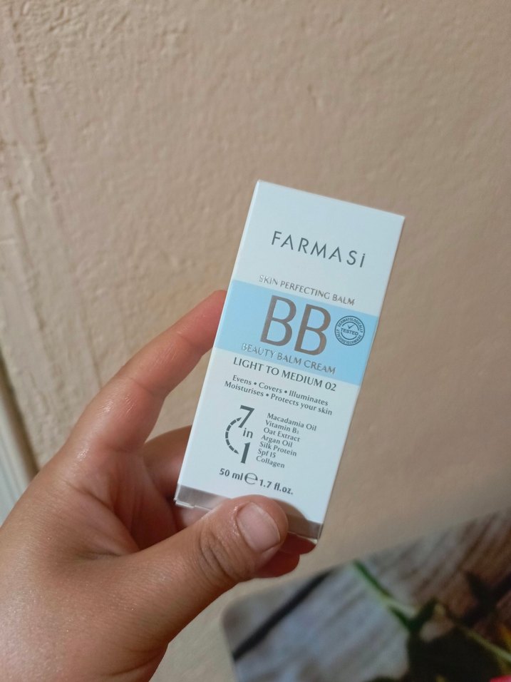 Farmasi BB krem, Light To Medium tonunda, cildi nemlendirir ve pürüzsüz bir görğnüm sağlar. Macadamya yağı ve yulaf özü içerir.