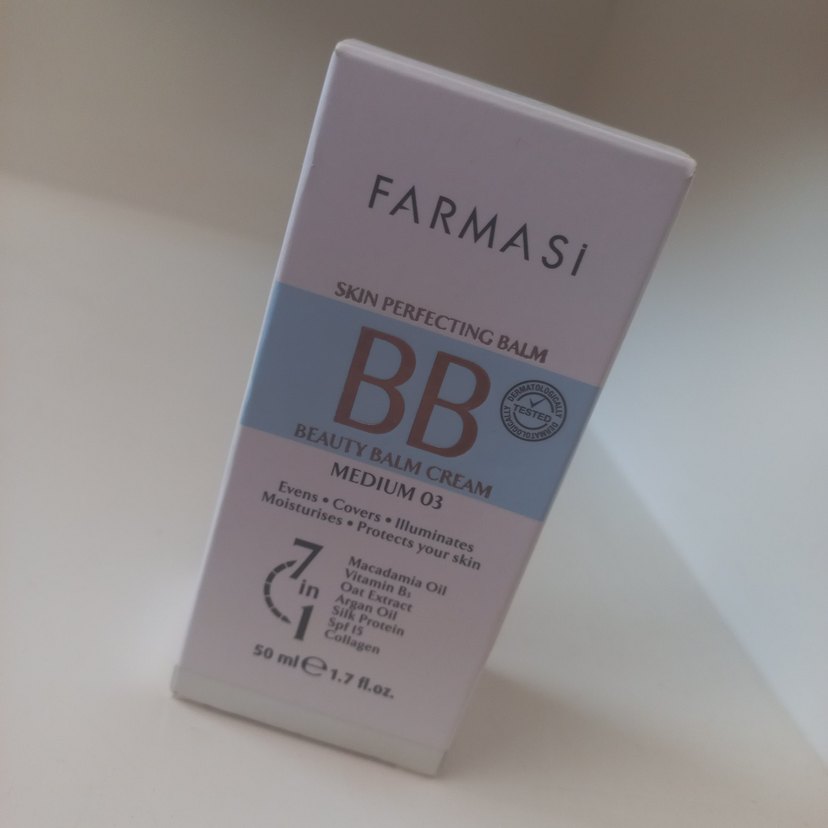 Farmasi BB Krem Medium 03 bej renginde, cilt tonunu eşitler, kapatır, aydınlatır, nemlendirir ve korur. İçeriğinde makadamya yağı ve vitaminler bulunur. 50 ml.