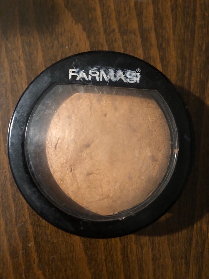 Farmasi marka koyu bej tonunda, şeffaf kapaklı kompakt allık.