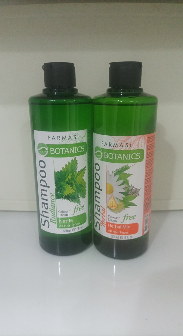 Farmasi Botanics şampuan seti, renk maddesi ve silikon içermeyen ısırgan ve bitkisel karışım formülleriyle tüm saç tiplerine uygundur.