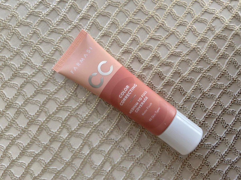Farmasi CC krem, camel tonunda, orta ila tam kapatıcılık sağlar. Renk düzeltici ve mat bitişli, tüm cilt tiplerine uygundur.