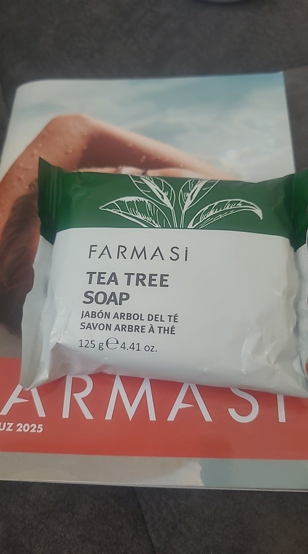 Farmasi Çay Ağacı Sabunu, ferahlatıcı çay ağacı kokusu ve nazik temizliğiyle 125g ağırlığında. Katalog fiyati 129 tl