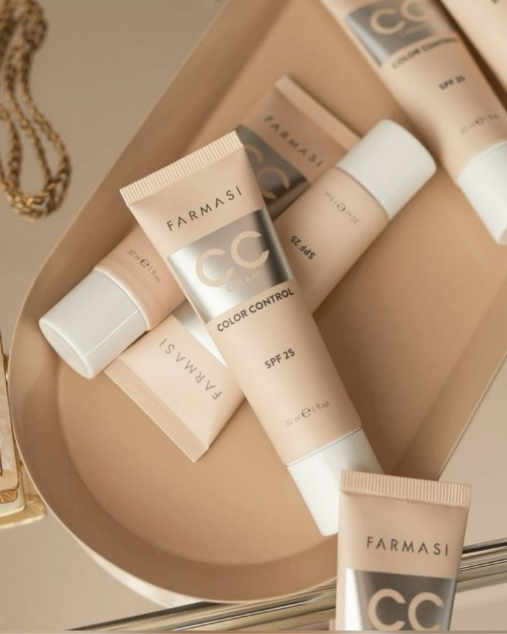Farmasi CC krem bej tonunda, SPF 25 korumalı, renk kontrolü sağlayan hafif kapatıcıdır.