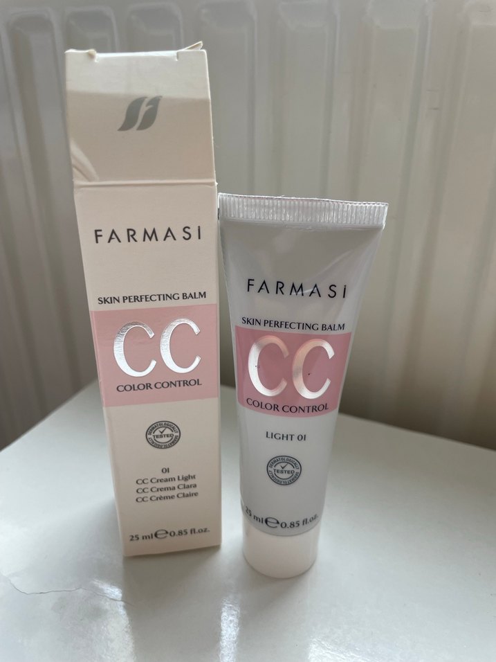 Farmasi CC krem, ten rengi pastel tonunda, renk kontrolü ve cilt kusurlarını kapatıcı 25 ml tüpte sunulur.