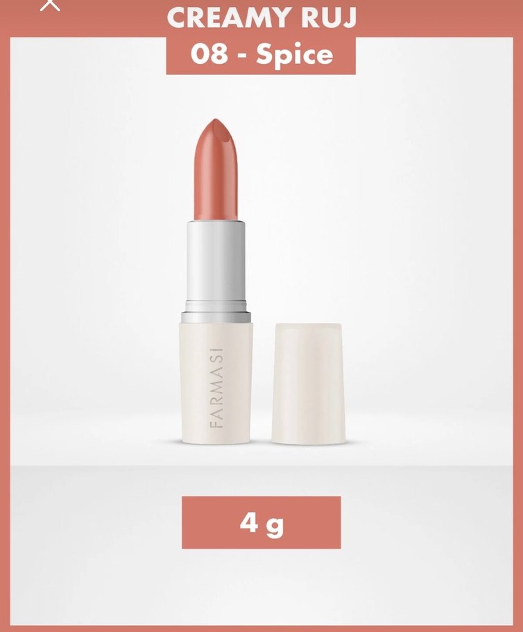 Farmasi Creamy Ruj 08 Spice, pastel bej renginde kremamsı dokulu, 4 gram ağırlığında bir rujdur.