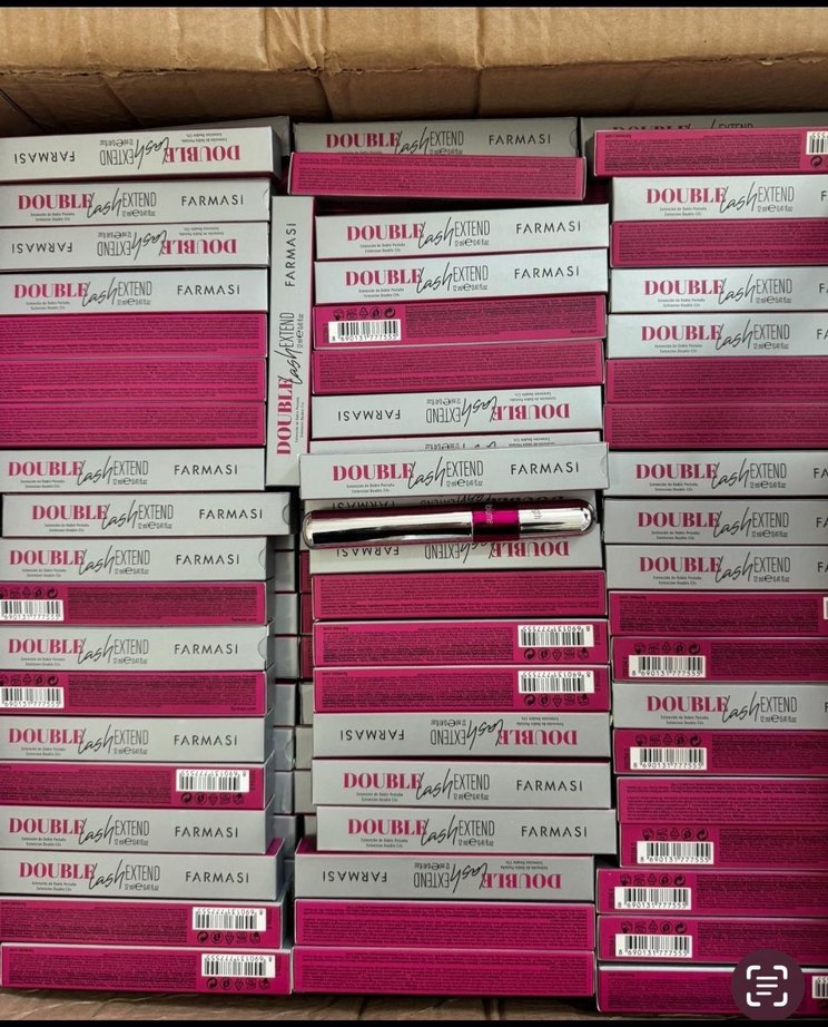 Farmasi Double Lash Extend maskara, pembe kutuda gri renkte. Kirpiklere hacim ve uzunluk kazandırır.