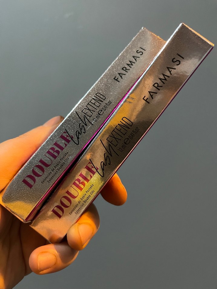 Farmasi Double Lash maskara, parlak altın renkli, yoğun kirpik tanımı ve hacim sağlar. Ambalajı metalik görünümlüdür. ✨