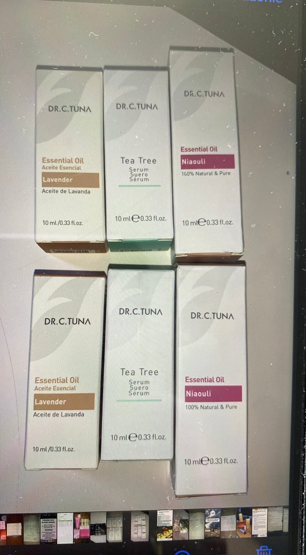 Farmasi DR.C.TUNA seti, 10 ml'lik Lavanta, Çay Ağacı ve Niaouli esansiyel yağlarından oluşur. %100 doğal ve safdır.
