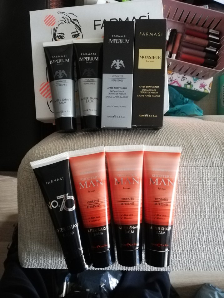 Farmasi erkek bakım seti, tıraş sonrası cildi nemlendiren ve ferahlatan losyonlar içerir. Imperium, Monsieur ve No. 76 serilerinden ürünler bulunur.