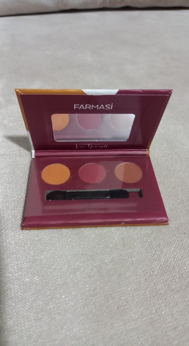 Farmasi allık paleti,içinde ayna ve aplikatör fırça bulunur.