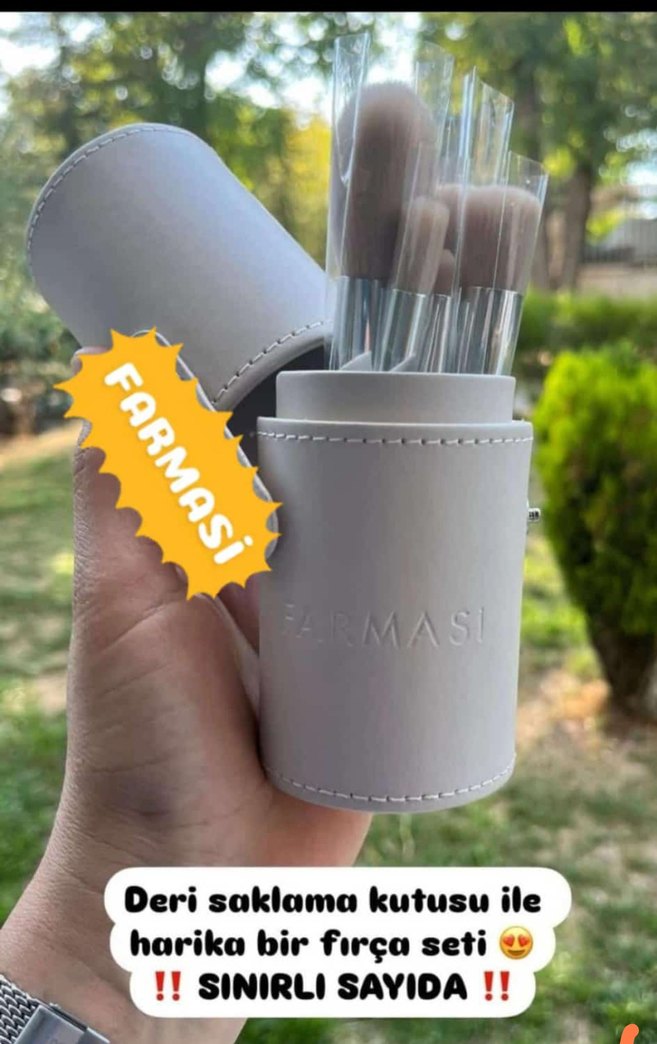 Farmasi makyaj fırça seti, yumuşak gri deri saklama kutusuyla birlikte geliyor. Fırçalar pürüzsüz uygulama için yumuşak kıllara sahip. ️