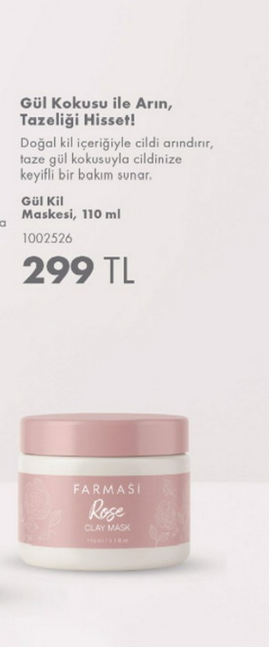 Farmasi Gül ve Lavanta Kil Maskesi, doğal kil içeriğiyle cildi nazikçe arındırır ve taze gül veya lavanta kokusuyla keyifli bir bakım sunar. 110 ml.