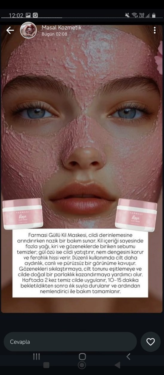 Farmasi Güllü Kil Maskesi, cildi derinlemesine arındırırken nazik bakım sunar. Kil içeriği fazla yağ, kir ve gözeneklerdeki sebumu temizler, cildin nem dengesini korur ve yatıştırır. Düzenli kullanımda cilt aydınlık, canlı ve pürüzsüz görünür. Haftada 2 kez temiz cilde 10-15 dakika uygulanır, ılık su ile durulanıp nemlendirici ile bakım tamamlanır.