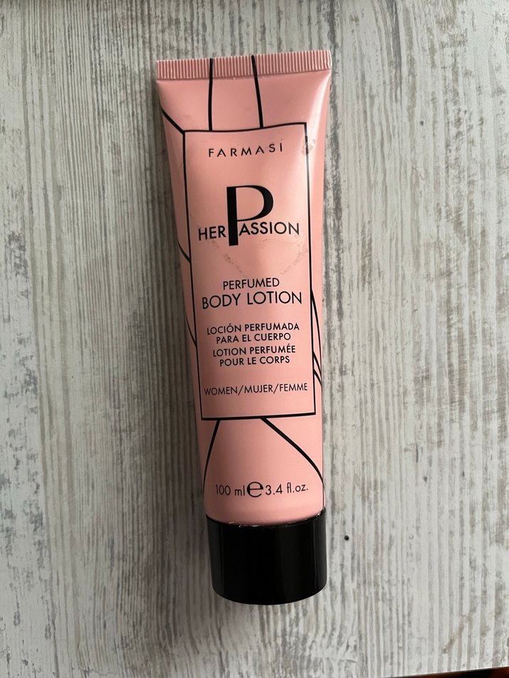 Farmasi Her Passion kadınlar için parfümlü vücut losyonu, hoş kokulu ve nemlendirici etkisiyle 100 ml tüpte sunulur.