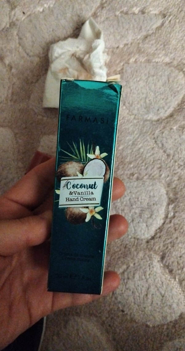 Farmasi hindistan cevizi ve vanilya kokulu el kremi, elleri nemlendirir ve yumuşatır.