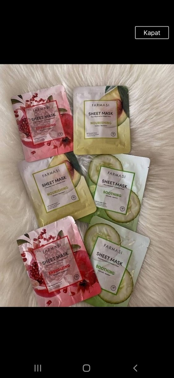 Farmasi sheet maskeler, nar ve salatalık gibi içeriklerle besleyici ve rahatlatıcı etki sağlar. Cildi canlandırır ve sakinleştirir.