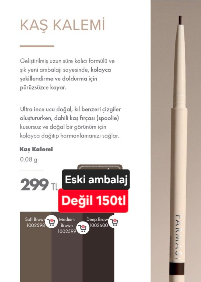 Farmasi kaş kalemi-bej tonunda doğal görünümlü kaşlar için uygundur. Kolay uygulanır ve belirgin kaşlar sağlar.