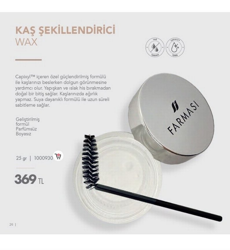 Farmasi kaş şekillendirici, kaşları besleyip dolgun görünüm sağlar. Yapışkan ve ıslak his bırakmaz. Suya dayanıklı formülüyle uzun süre kalıcıdır. Özel fırça ile gelir. ️