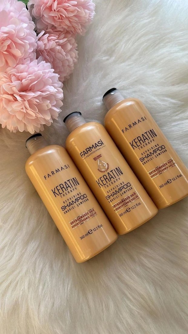 Farmasi Keratin şampuan, saçları besleyip onarır. Keratin tedavisi ile saçları pürüzsüz ve sağlıklı gösterir. Her şişe 350 ml hacmindedir.