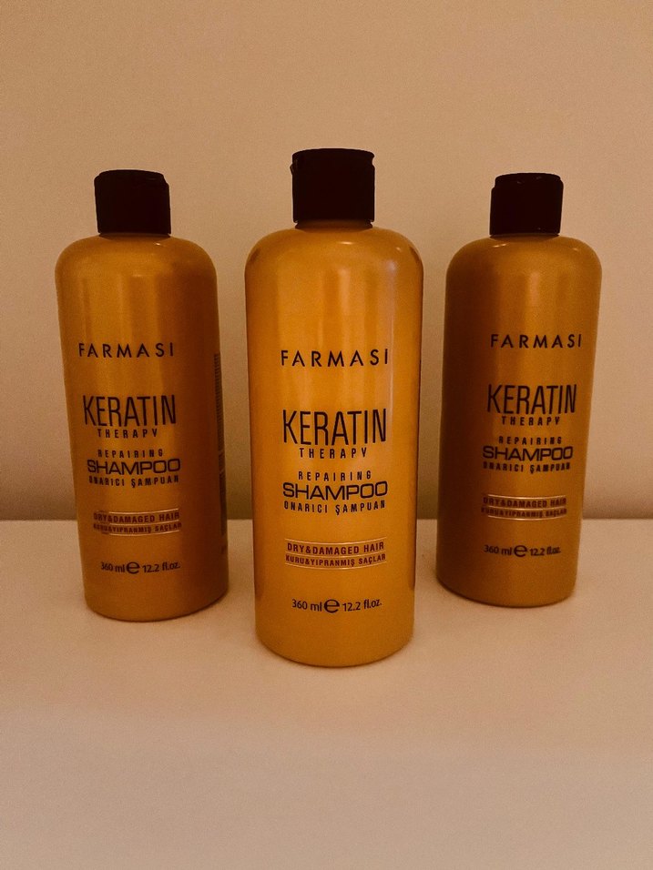 Farmasi Keratin Therapy onarıcı şampuan, kuru ve yıpranmış saçları keratin ile temizler ve onarır. 360 ml şişede sunulur. fiyat için dm lütfen