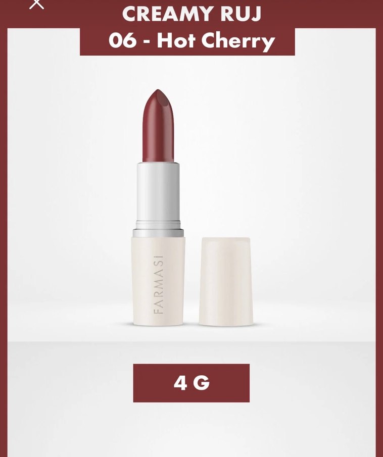 Farmasi markasının Hot Cherry renkli krem rujudur. Açık bordo tonunda, 4 gram ağırlığındadır. Creamy ruj 06