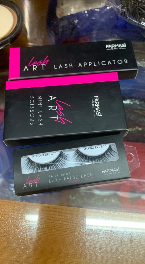 Farmasi Lash Art set, koyu pembe renkli sahte kirpikler, kirpik uygulayıcı ve mini makas içerir. Uygulama kolaylığı sağlar. ✂️