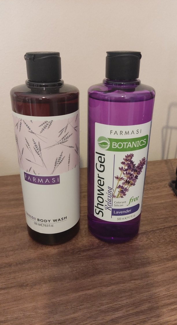 Farmasi Botanics lavanta özlü şampuan ve duş jeli, 500 ml şişede hafif temizleme ve rahatlatıcı lavanta kokusu sunar.