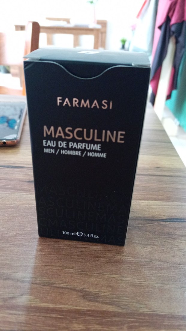 Farmasi Masculine Eau de Parfum, erkekler için 100 ml, koyu ve bohem tarzda, bej renkli ambalajda, Paris esintili bir koku sunar.